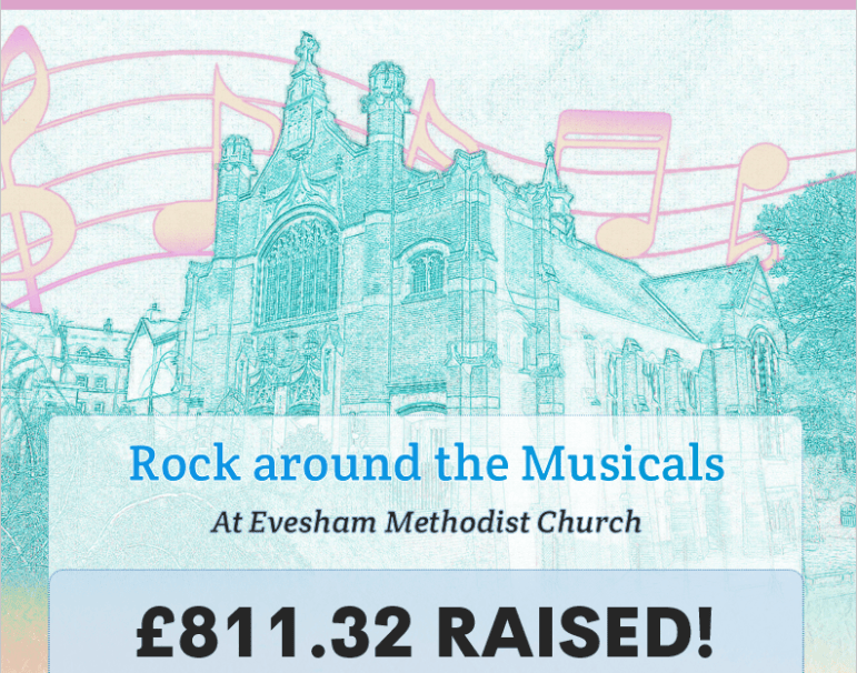 Rock around the Musicals, held at Evesham Methodist Church, raised ยฃ811.32 for The Tracy Sollis Leukaemia Trust!